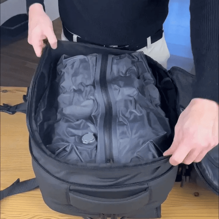 Thanks to the built-in vacuum system, you can save up to 70% in space, so everything fits in your carry-on – even for a longer trip. No need to check a bag, but you still have everything right there with you.